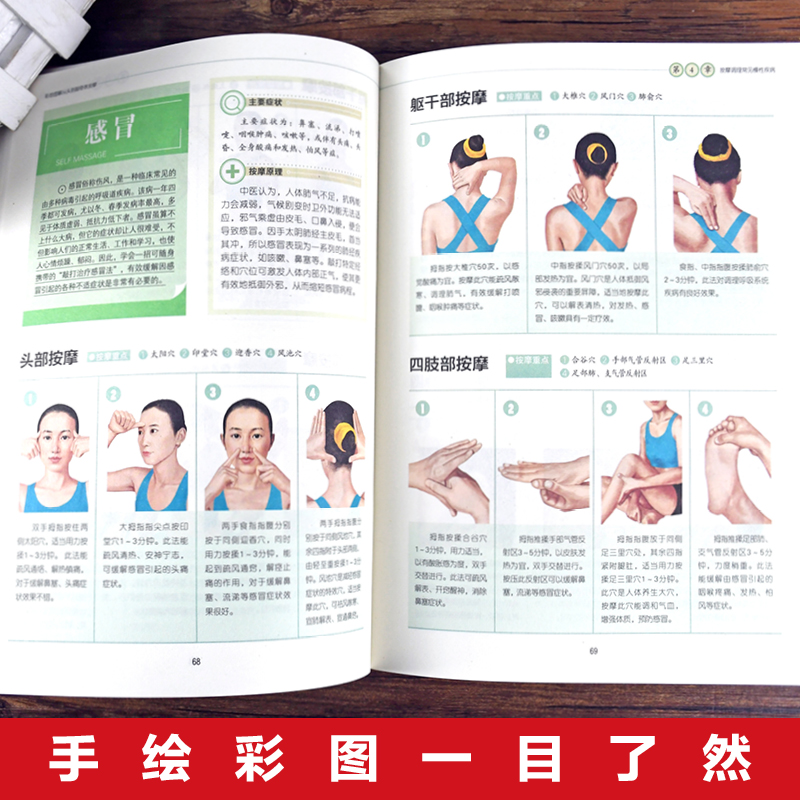 彩绘图解 中医实用疗法大全中医疗法全面解读彩色图解按摩穴位人体经络详细步骤中医养生按摩手法指导书 从头到脚奇效按摩