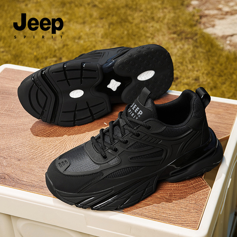 男士 2025秋季 运动鞋 黑色休闲鞋 JEEPSPIRIT吉普新款 户外老爹鞋 男鞋
