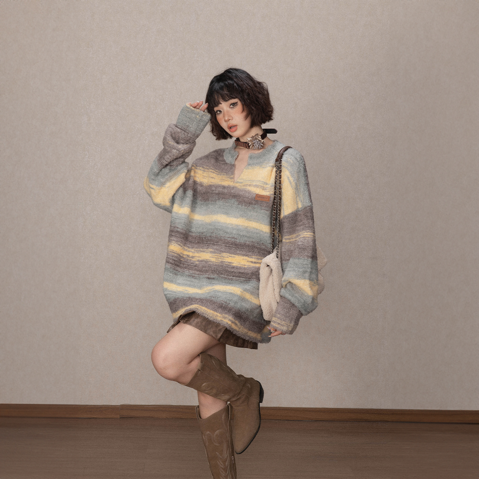 INXX 撞色假两件翻领设计开衫 美式 男女同款 毛衣情侣 复古针织衫