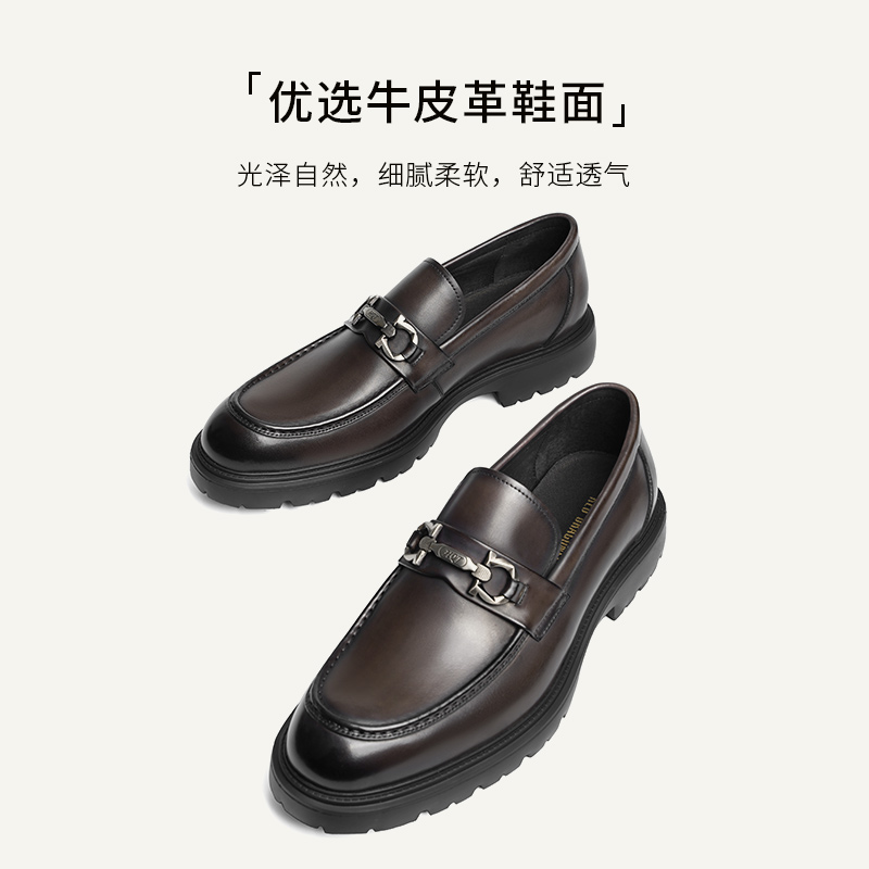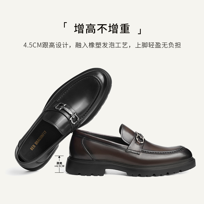男春秋新款 皮鞋 豆豆男鞋 结婚增高男士 一脚蹬商务正装 红蜻蜓乐福鞋