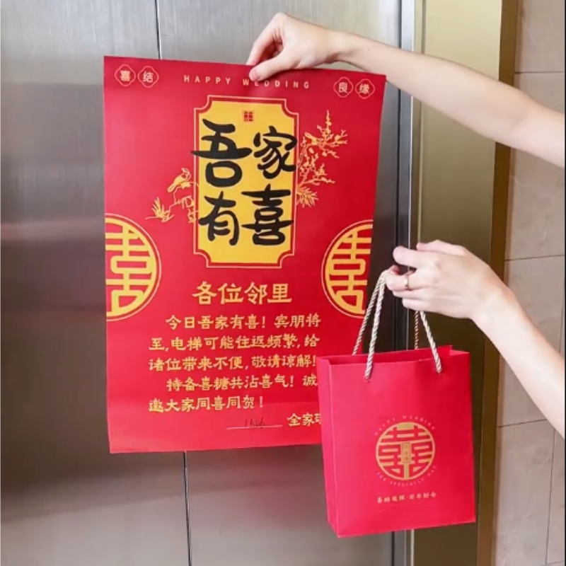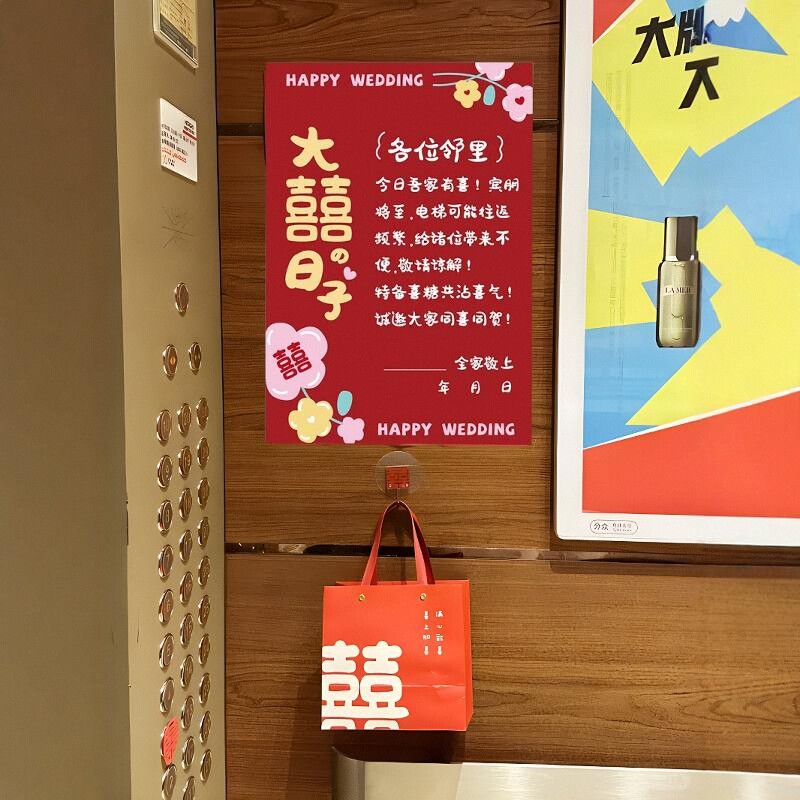 结婚电梯告示喜字贴纸订婚礼专用小区囍字喜糖贴布置装 饰婚庆用品