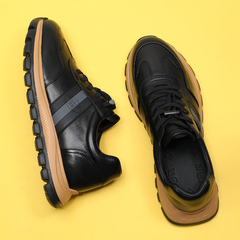黑底轻便休闲跑步鞋 真皮运动皮鞋 新款 2025秋季 男全牛皮欧洲站男鞋