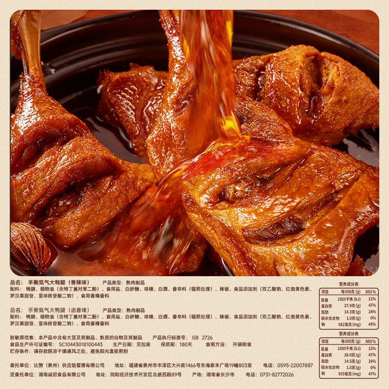 比比赞手撕大鸭腿氮气锁鲜辣卤肉类休闲零食卤香辣味夜宵解馋小吃