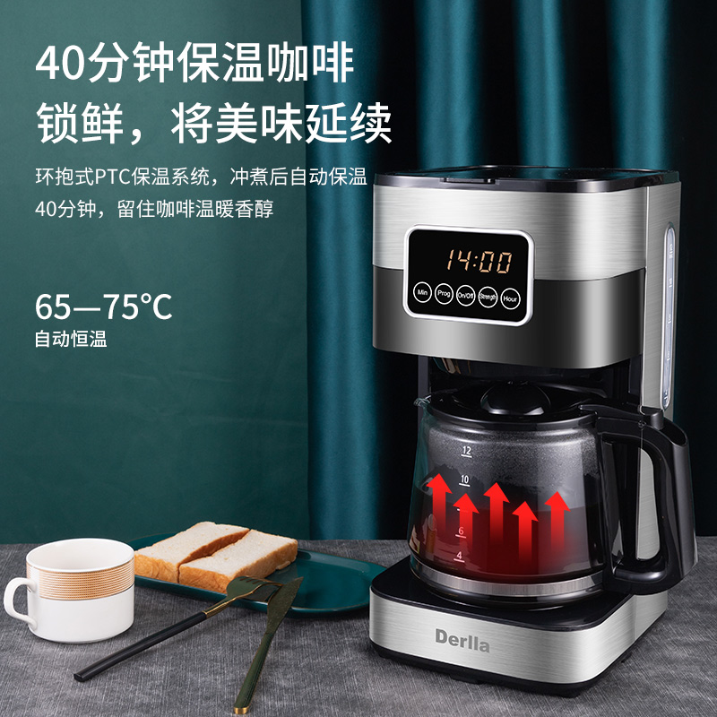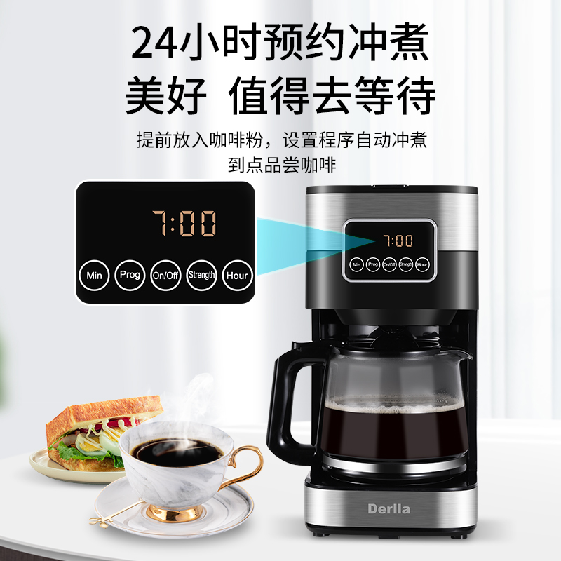 德国Derlla全自动美式 煮咖啡粉壶一体 咖啡机家用小型办公室滴漏式