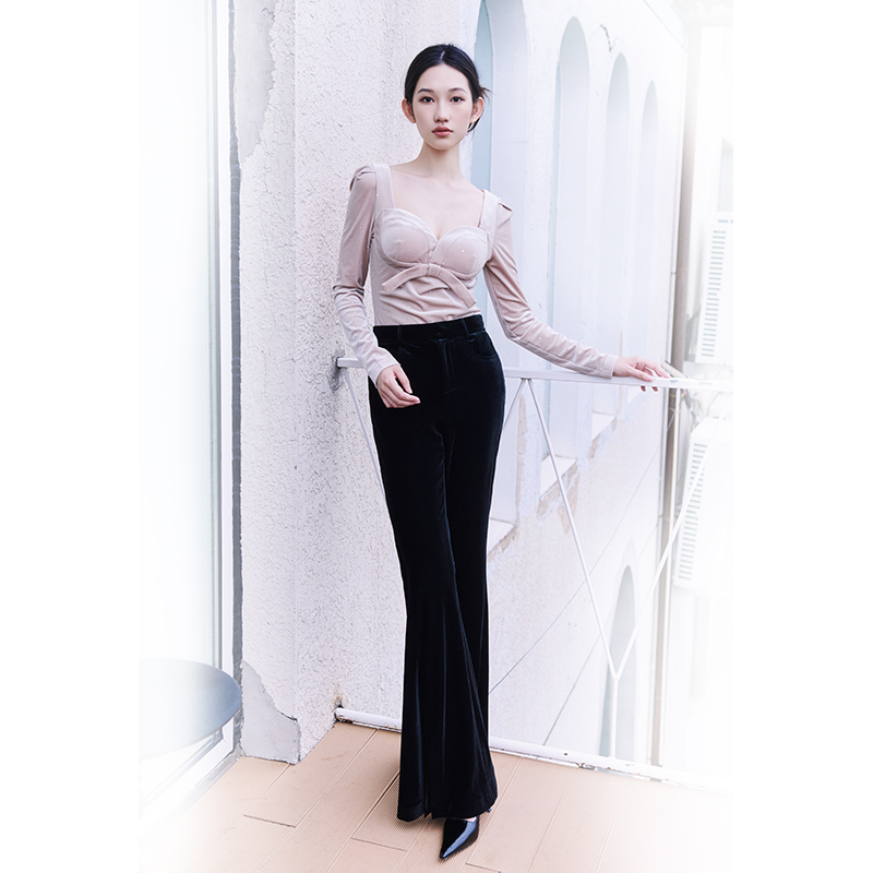 丝绒烫钻立裁蝴蝶结连体上衣 YESIR叶谦原创设计秋新款 YES