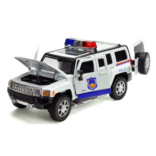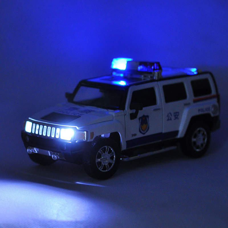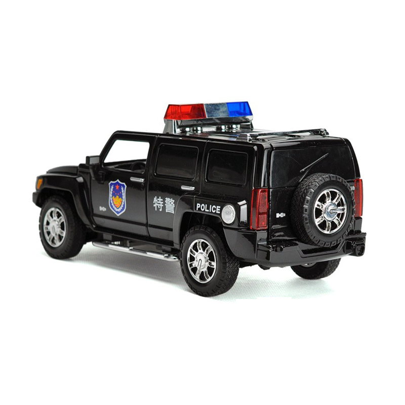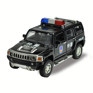 彩珀成真1 24合金黑色悍马H3公安警车模型越野车开门声光儿童玩具