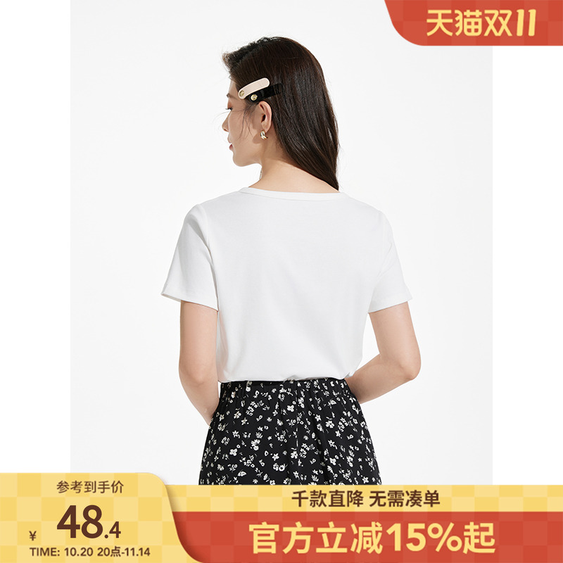 女士小V领短袖 新款 上衣基础内搭上衣 T恤2025年夏季 热风白色短袖