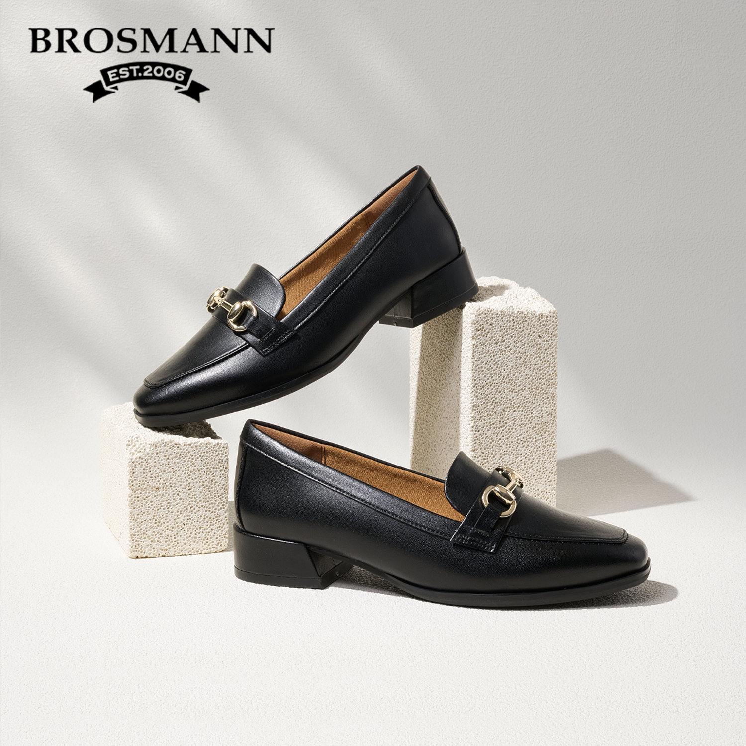 软底透气通勤粗跟女单鞋 宝舒曼乐福鞋 真皮中跟女鞋 2025新款 子 女款