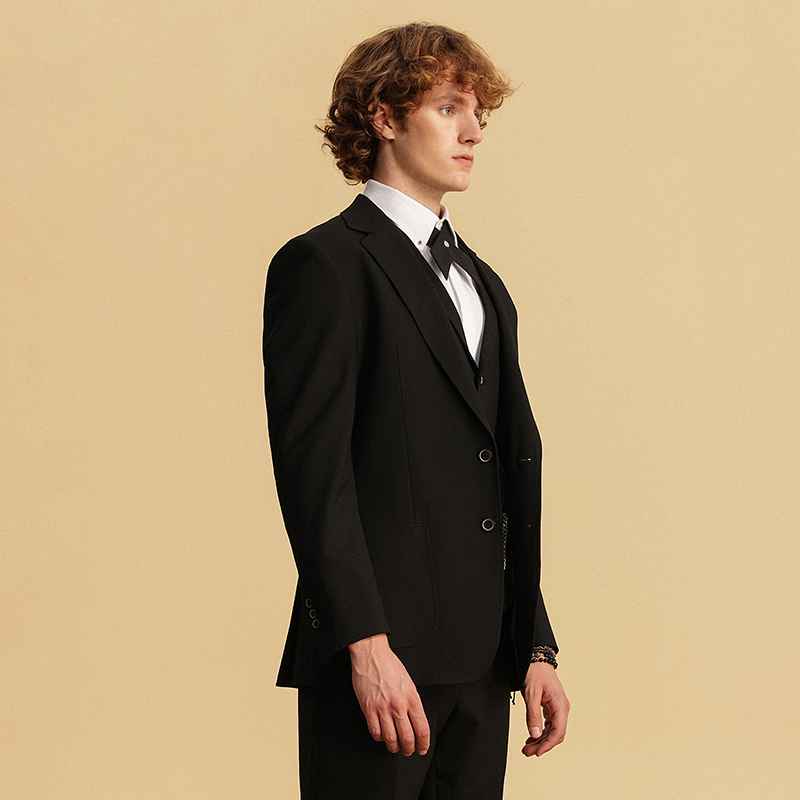 白色戗驳领西服男高级感成熟稳重男装 三件套搭配订婚穿搭礼服 西装