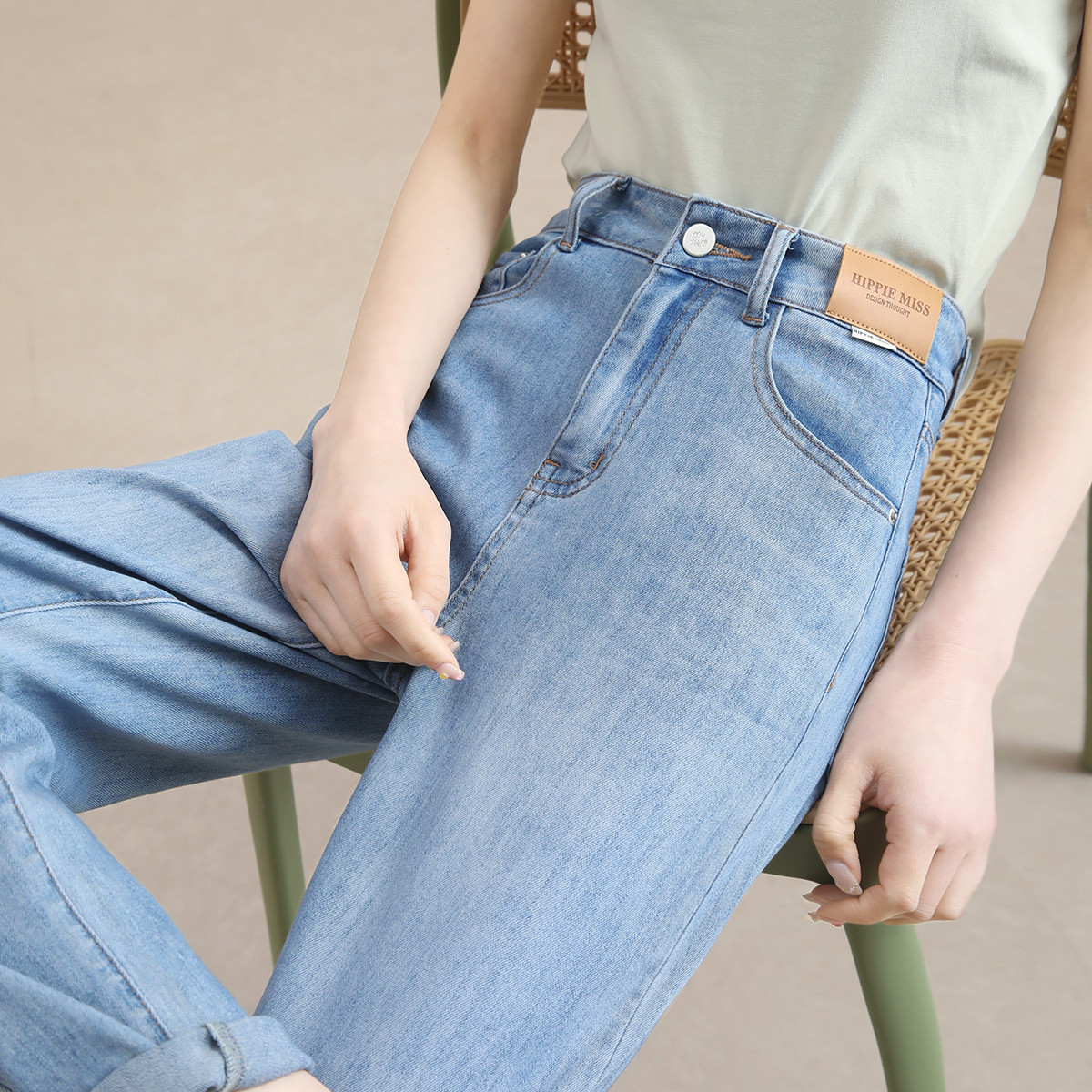 子夏薄款 小个子穿搭高腰显瘦休闲裤 女春秋季 自然涩韩系微喇牛仔裤