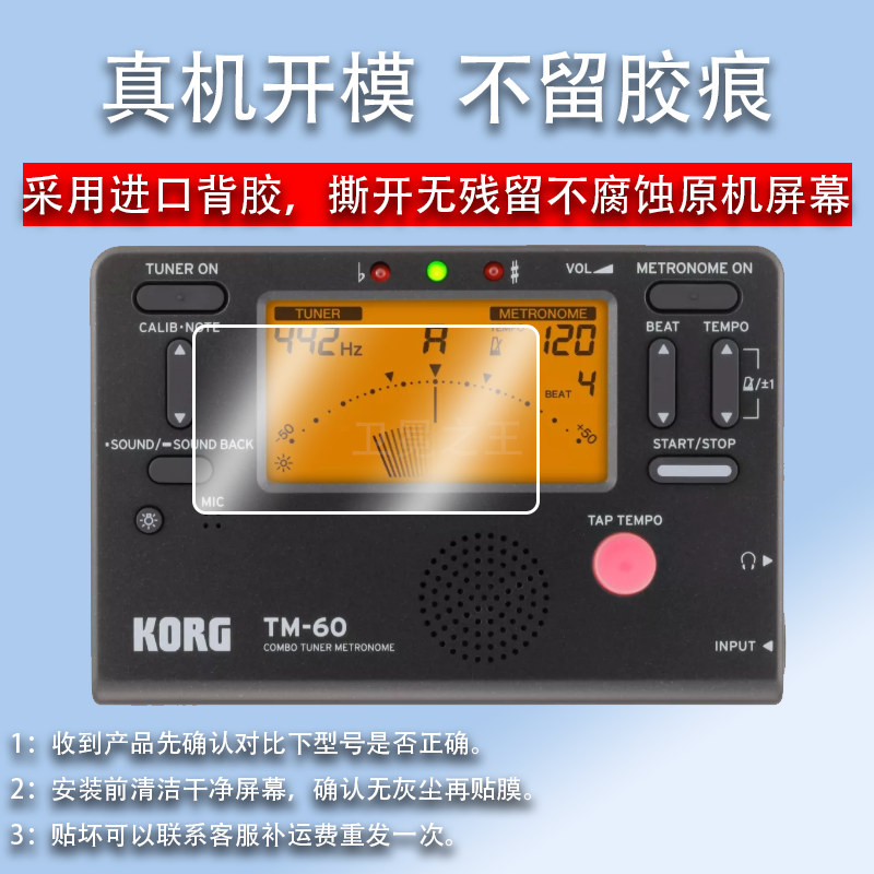 60贴膜pa700吉他调音节拍器TM60C屏幕膜保护膜TM 50TR贝司提琴古筝电子校音表非钢化膜 适用于KORG