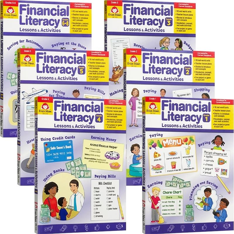 美国加州教辅 Financial and Lessons Evan Grade 6册 财商启蒙 金融知识启蒙课程 Literacy 进口 英文原版 Activities Moor
