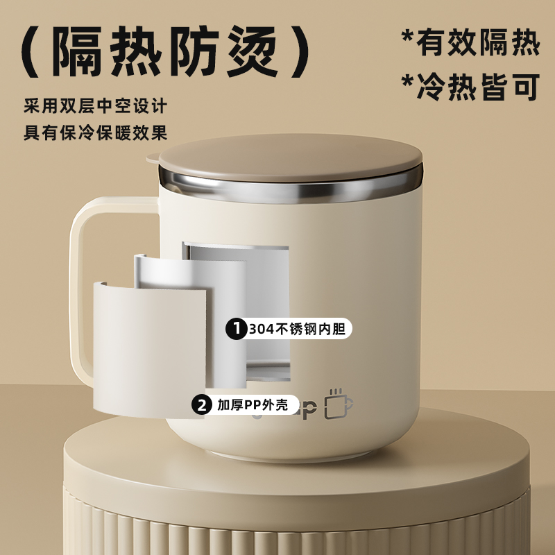 不锈钢杯子冲泡燕麦杯儿童刻度牛奶杯带盖马克杯宝宝防摔喝奶杯子