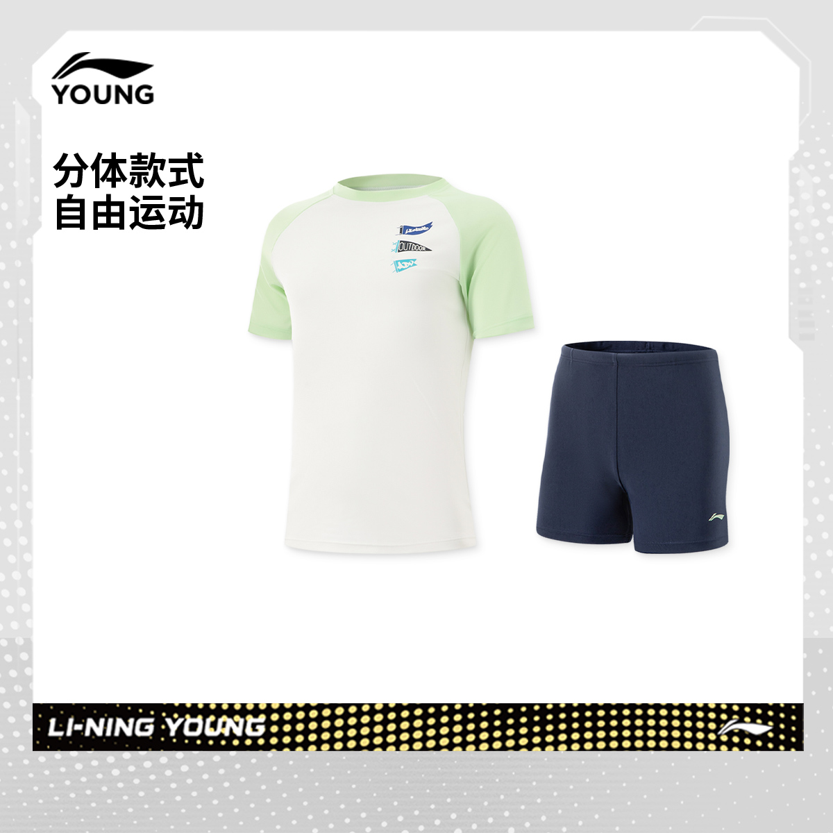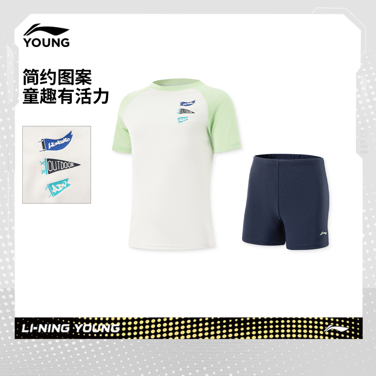 游泳系列吸湿速干防晒童装 李宁紧身分体泳衣套装 男小大童新款