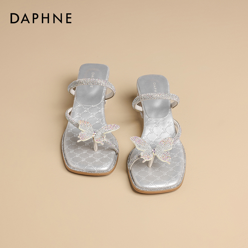 凉拖蝴蝶结夹趾凉鞋 夏季 女外穿粗跟2025年新款 达芙妮水钻一字拖鞋