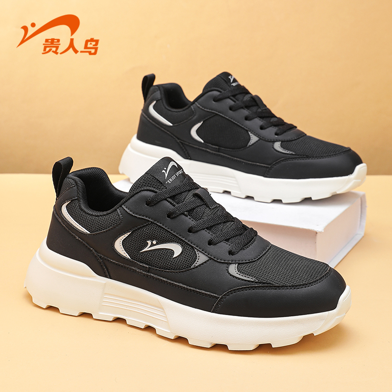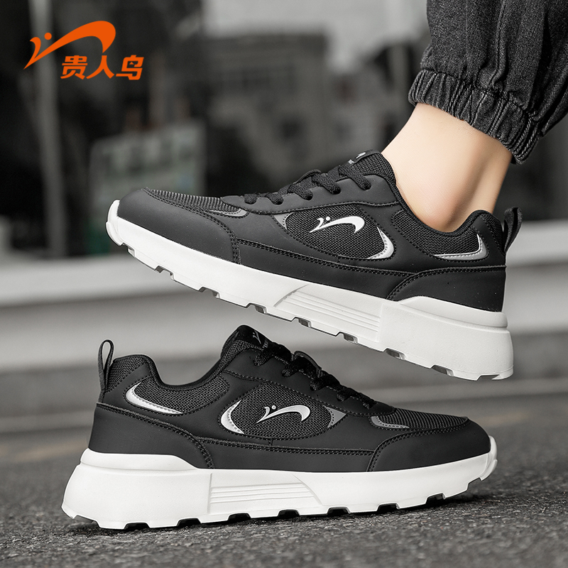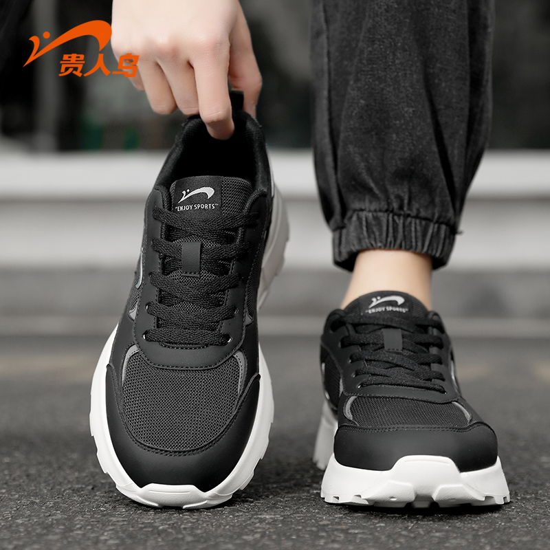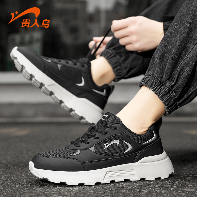 新款 2025秋季 黑色百搭休闲鞋 网面透气运动鞋 贵人鸟正品 子男款 男鞋