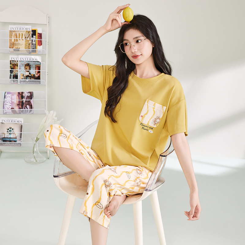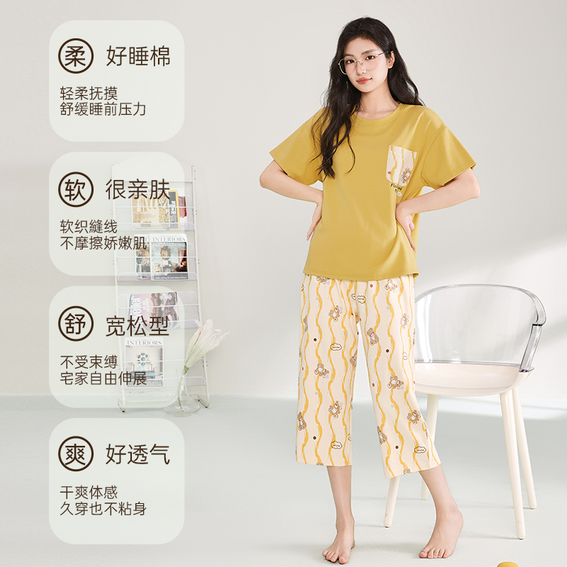 夏季 短裤 2025新款 春秋夏款 睡衣女款 少女士家居服套装 夏天纯棉短袖