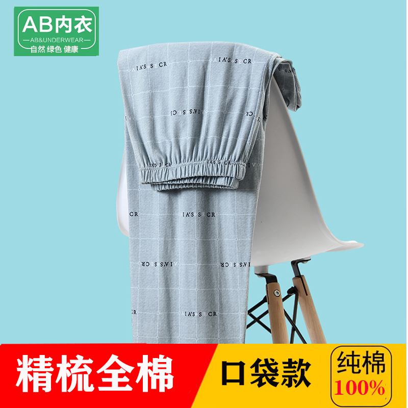 中老年爸爸全棉印花长裤 AB内衣纯棉睡裤 宽松加大码 家居裤 春夏男士