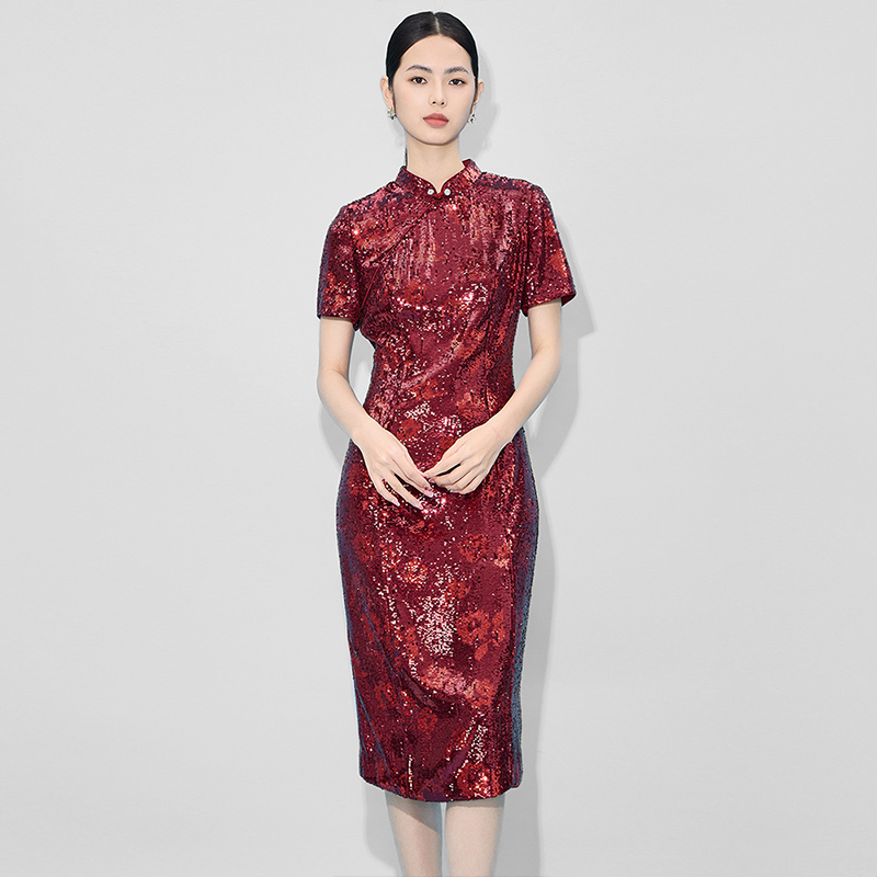 连衣裙子婚庆礼裙女装 专柜正品 亮片旗袍裙新中式 新款 马天奴夏季
