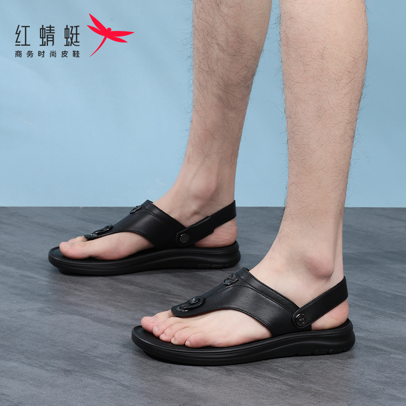 夹脚凉鞋 凉拖鞋 男款 沙滩鞋 真皮人字拖头层牛皮 防滑夏季 红蜻蜓男士