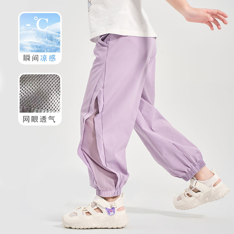 儿童速干网眼透气女宝宝工装 冰丝薄款 裤 运动裤 女童防蚊裤 长裤 夏季