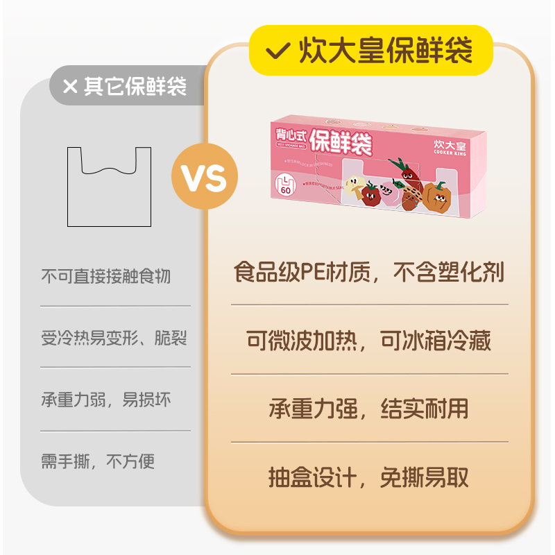 食品级背心式 保鲜袋家用冰箱微波炉专用加量加厚一次性厨房手提袋
