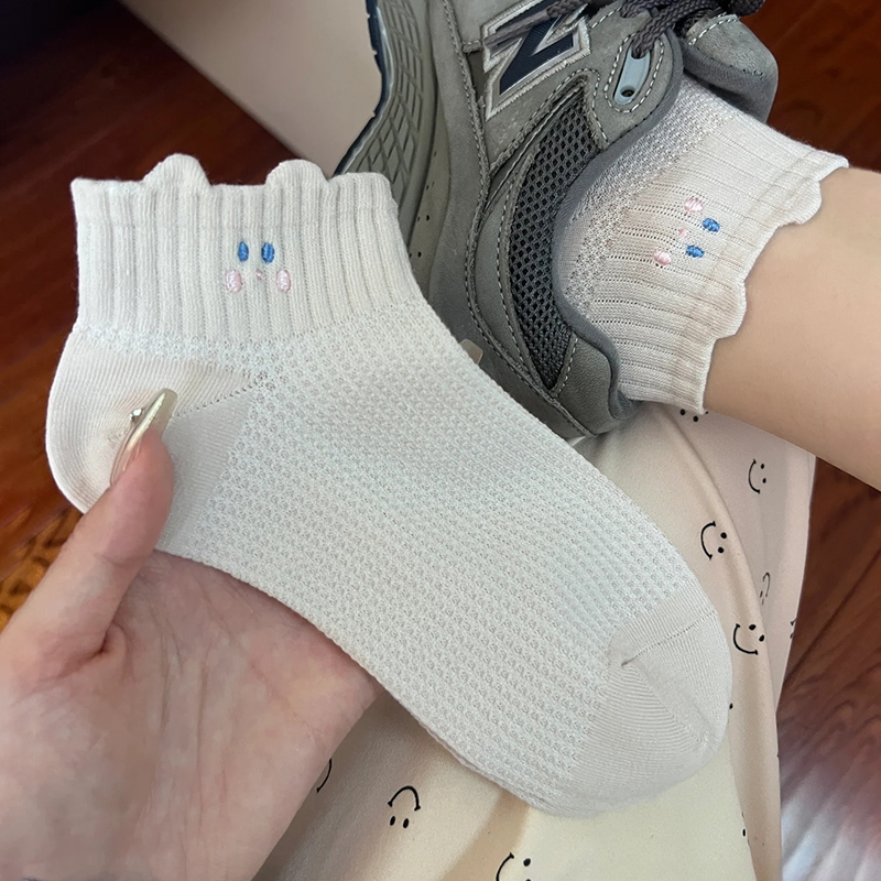 薄款 有棵树袜子女士短袜夏季 纯棉防臭透气防滑白色短 10A抗菌