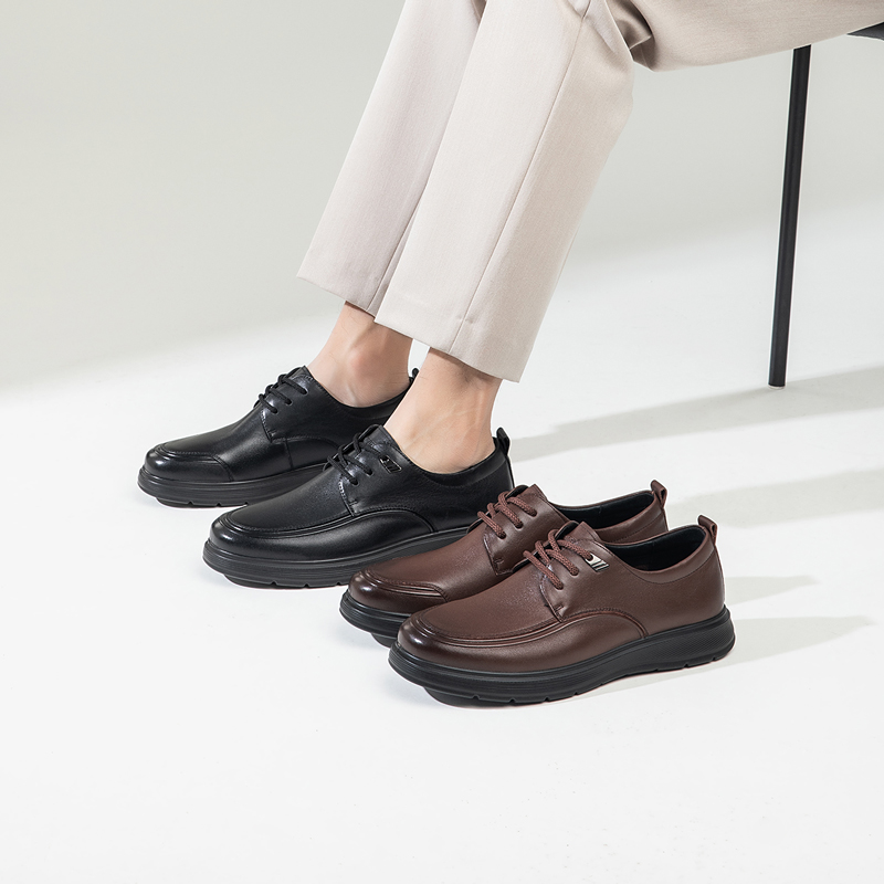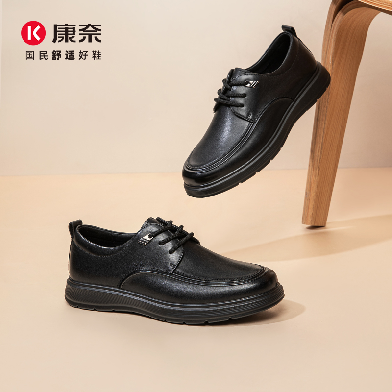 头层牛皮系带轻质真皮舒适男士 康奈男鞋 商务休闲皮鞋 新款 2025春季