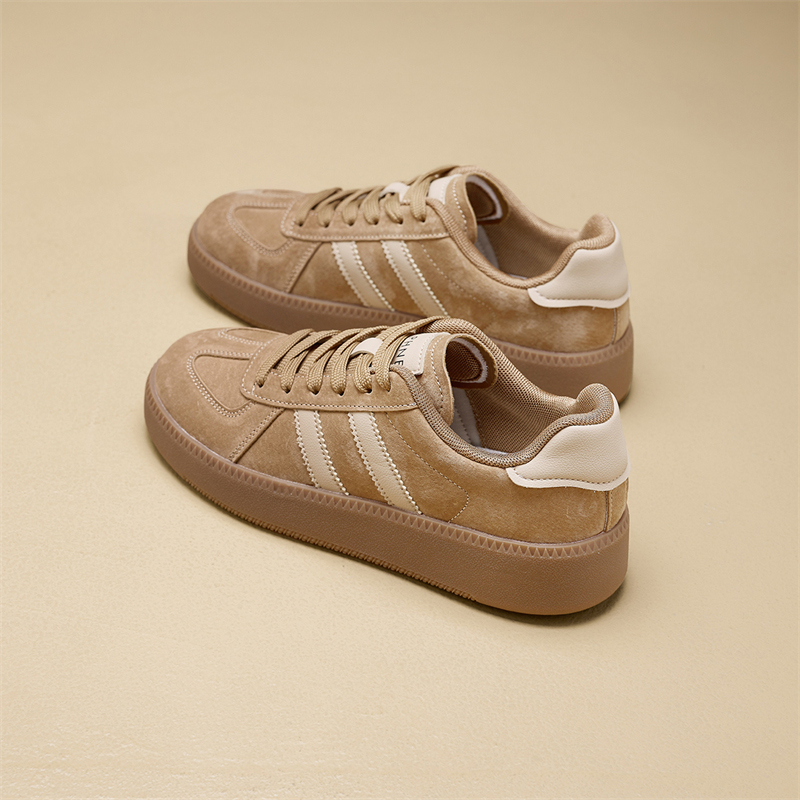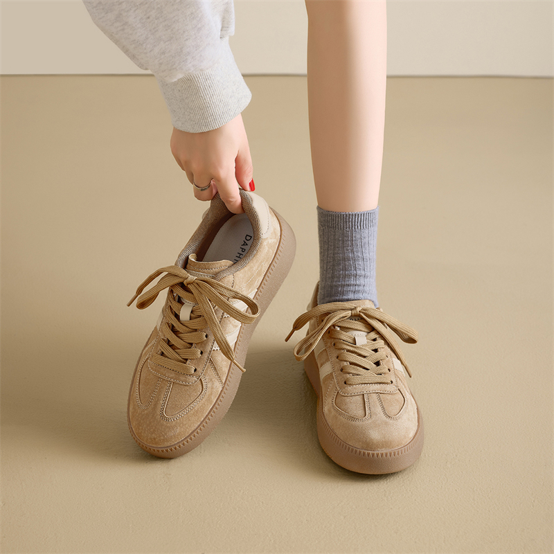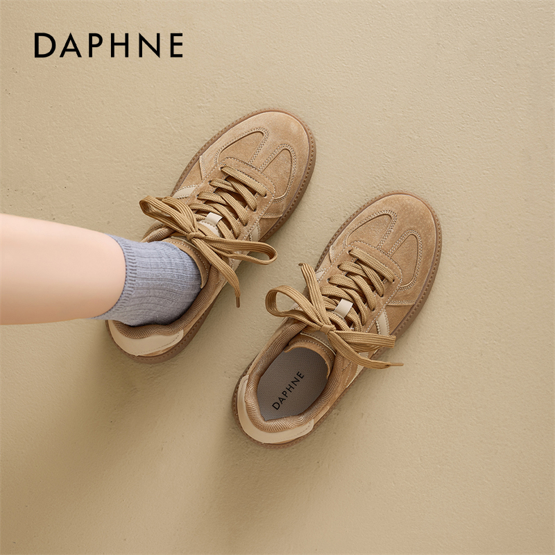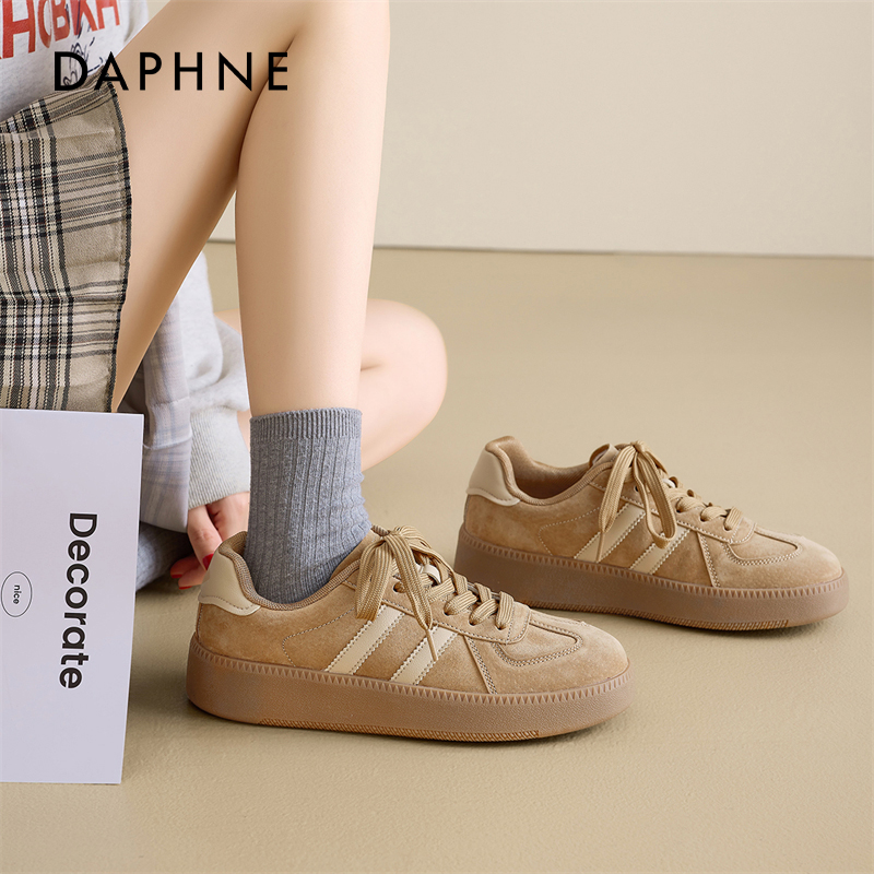 棕色复古轻便增高板鞋 休闲运动鞋 女2025春秋新款 达芙妮厚底德训鞋