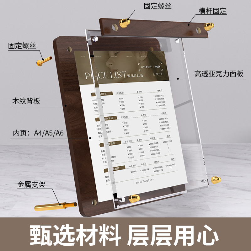 胡桃木奶茶店菜单展示牌台卡亚克力立牌a4台签桌面美发店美容院价格价目表展示架定制咖啡店桌牌立式 台牌摆台