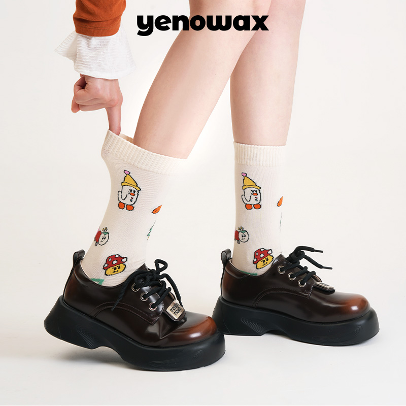 秋冬女袜2025新款 中筒袜女士袜子 粉色可爱少女卡通棉袜搭配小皮鞋