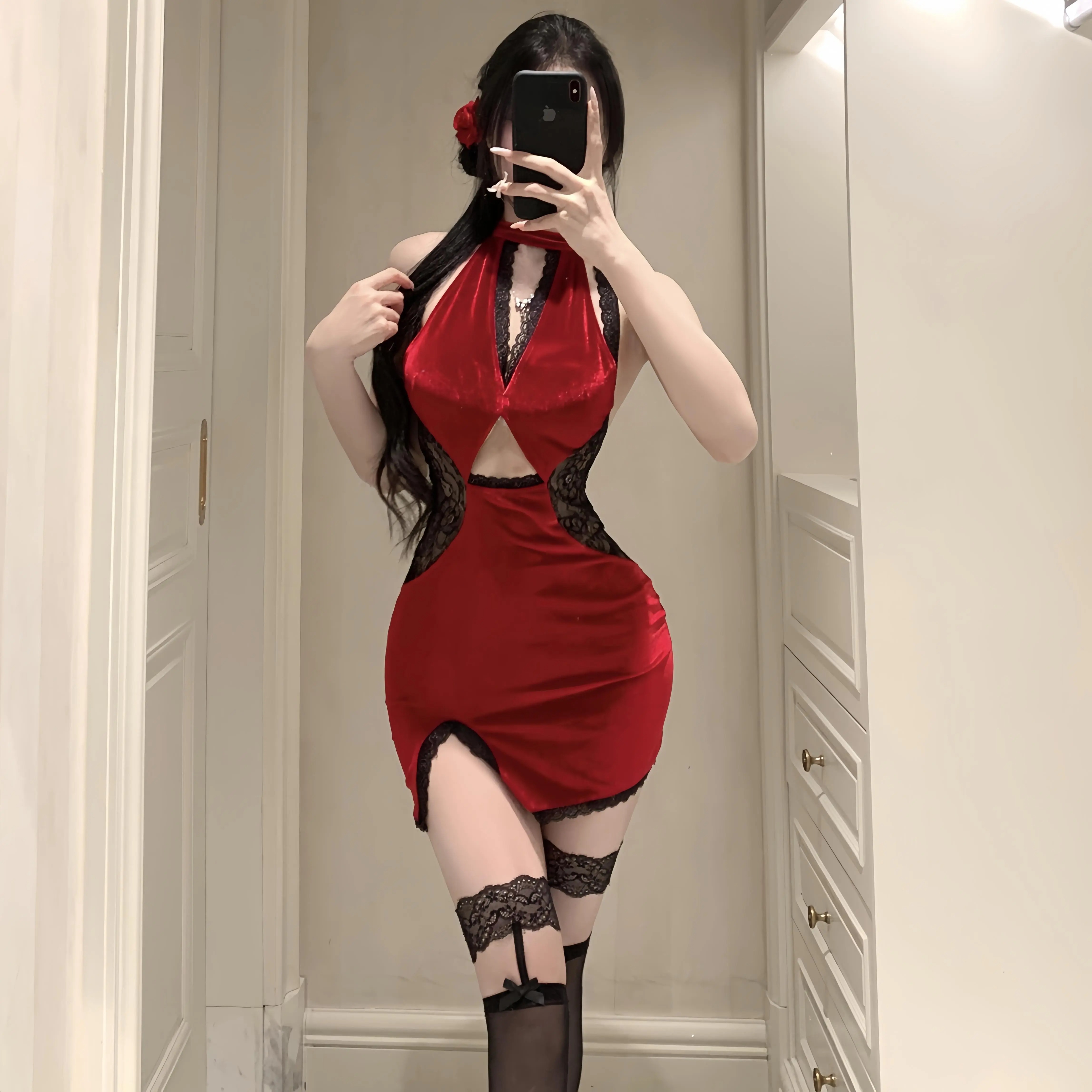 性感蕾丝旗袍修身 火辣诱惑御姐气质高级感趣味私房床上情调睡裙