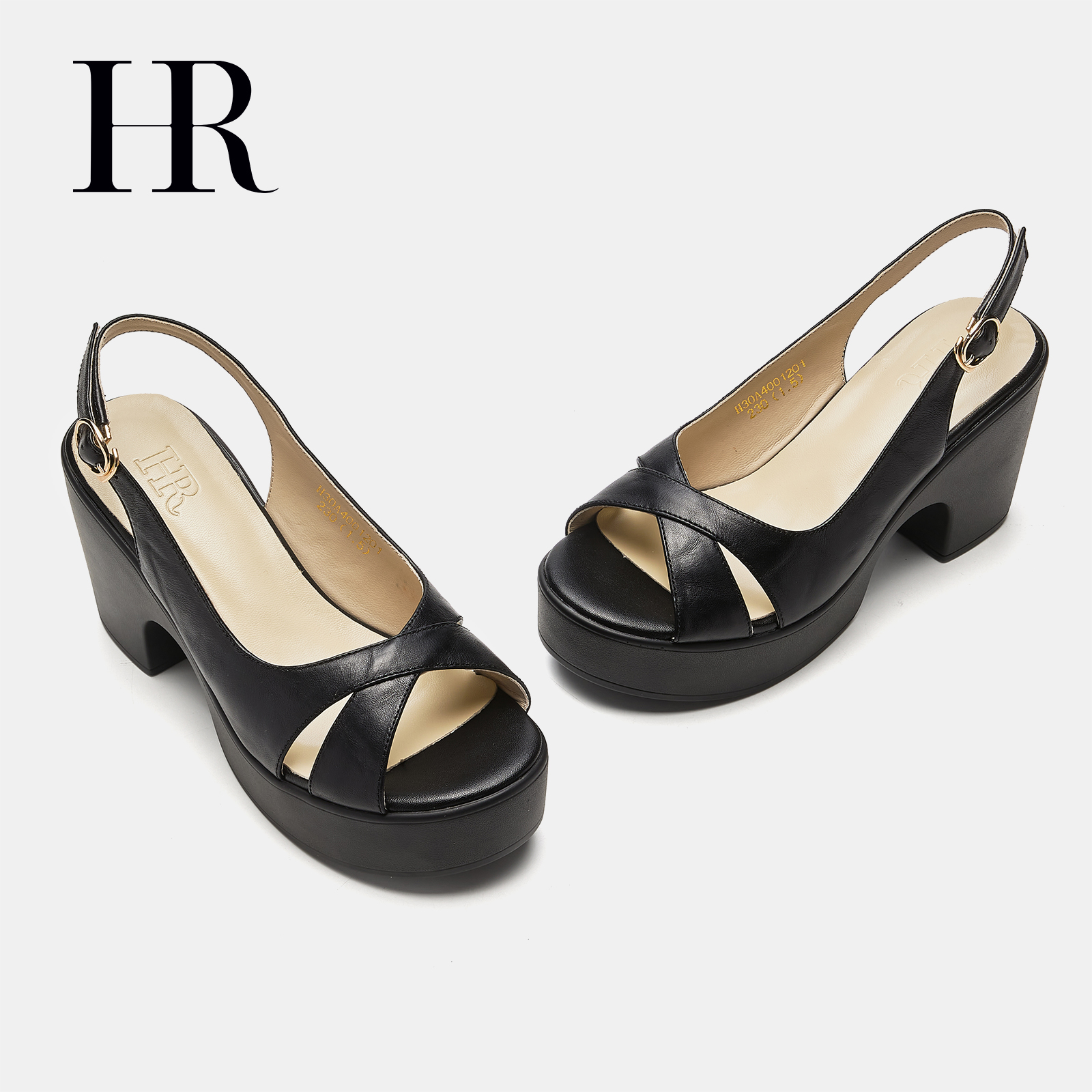 子2025夏季 粗跟防水台一字扣带鱼嘴凉鞋 新款 凉鞋 时装 HR赫莲娜女鞋