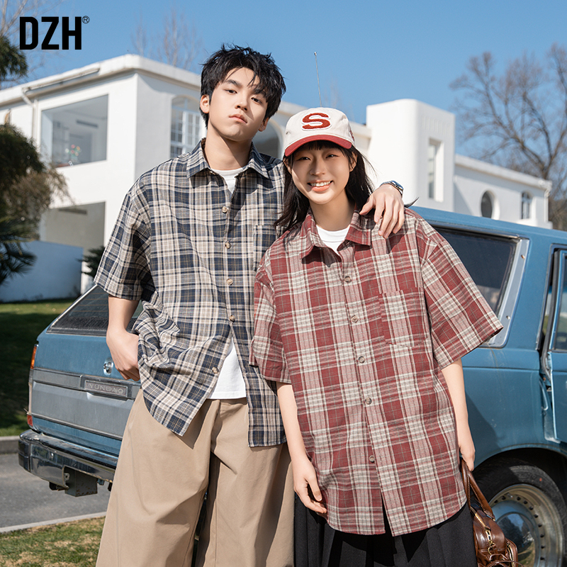女秋 纯棉不对称系带上衣宽松复古格子衬衫 RUISHI芮时 纸片人