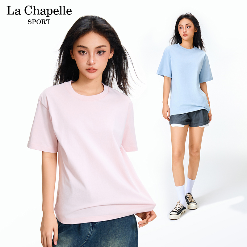 情侣衣服Y 宽松内搭打底衫 拉夏贝尔正肩纯棉白色短袖 t恤女2025新款