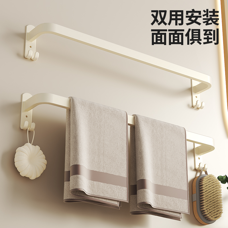 毛巾架卫生间免打孔式 单双杆太空铝墙上高级感挂杆洗澡间收纳挂架