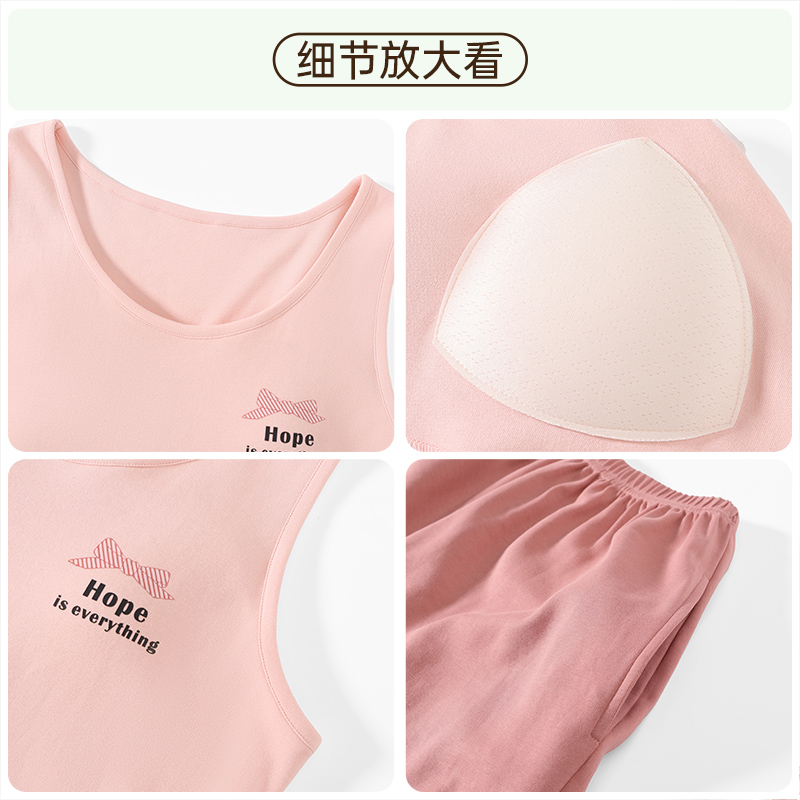 女士家居服套装 玛伦萨纯棉睡衣女2025新款 带胸垫背心套装 薄款 夏季