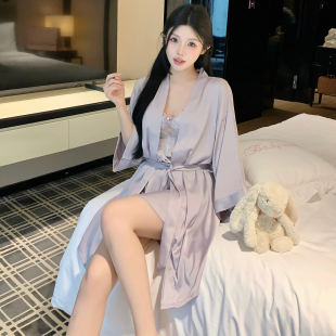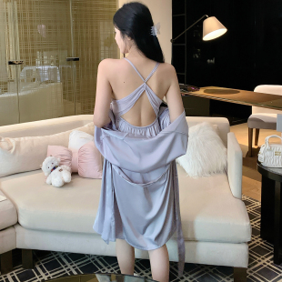 高级感法式 冰丝带胸垫家居服 轻奢吊带睡裙性感蕾丝睡衣两件套薄款