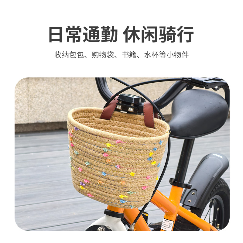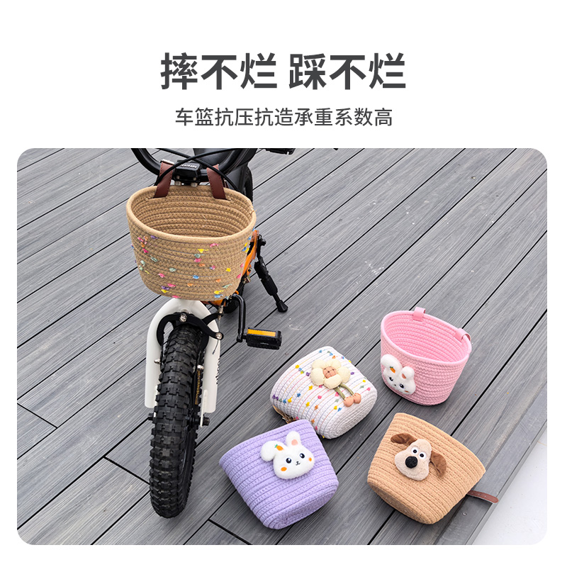 Tooquv自行车车筐童车玩偶车篮儿童单车绳编前筐车篮子滑板车车篓