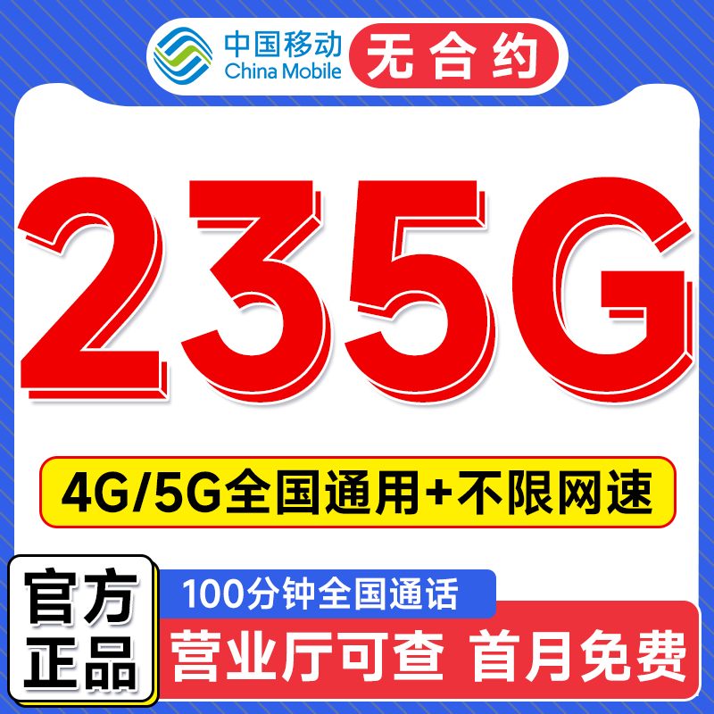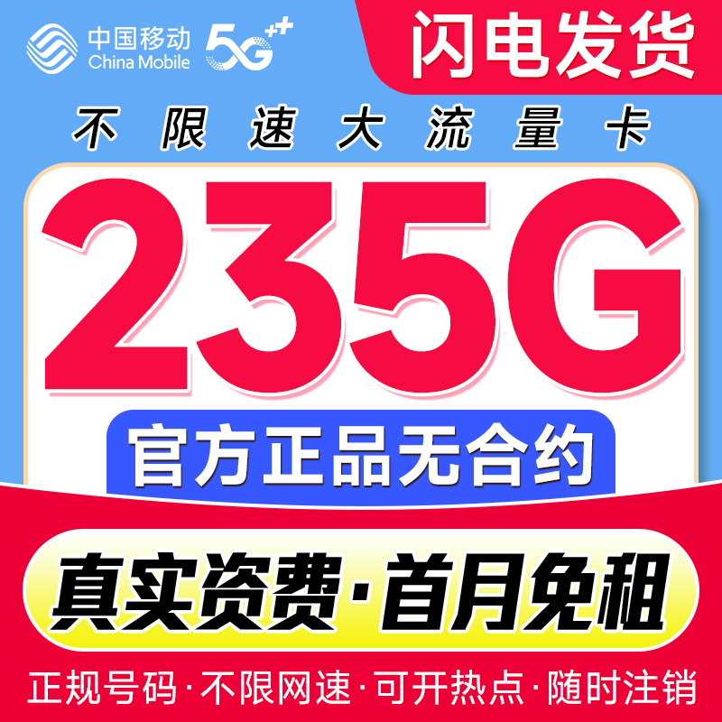 移动流量卡纯流量上网卡无线限全国通用4g5g大流量卡手机卡电话卡