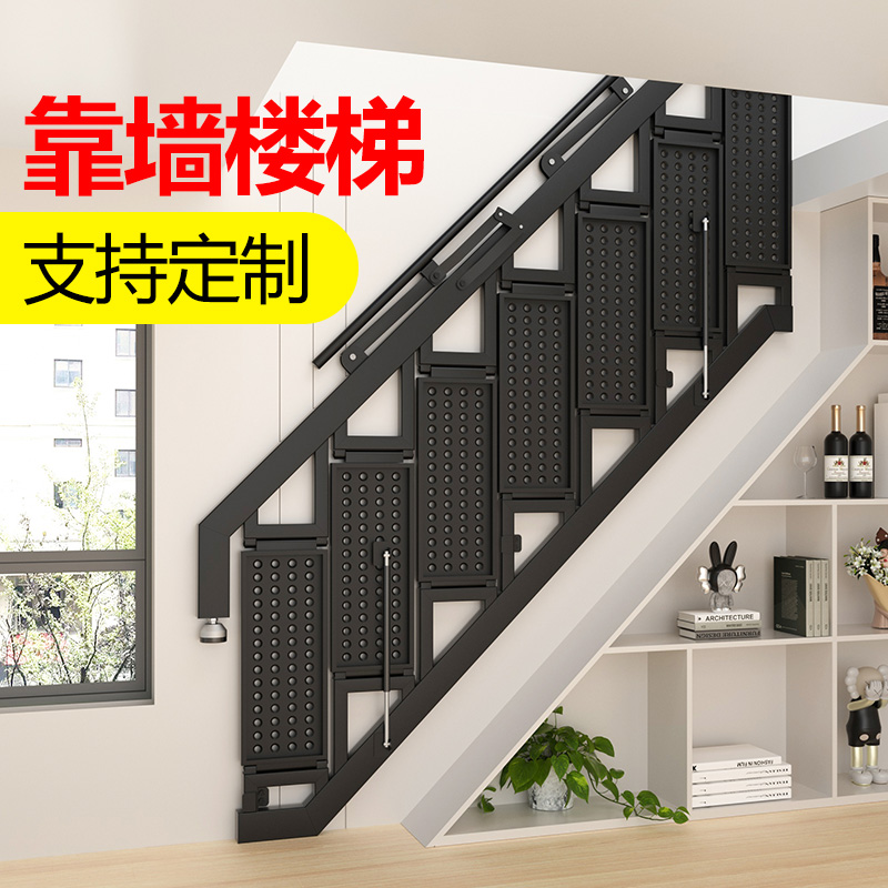 铝合金折叠楼梯靠墙家用阁楼梯侧面贴墙加厚碳钢复式 室内扶手梯子