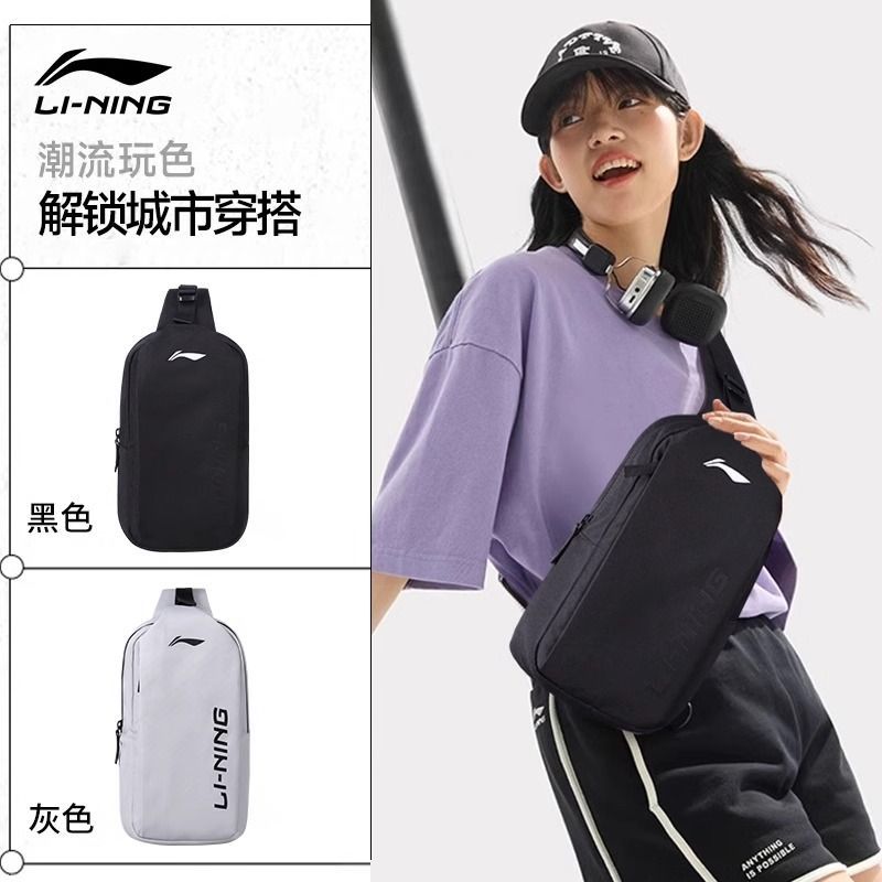 李宁运动胸包男女同款 大容量户外通勤包休闲百搭单肩包潮流斜挎包