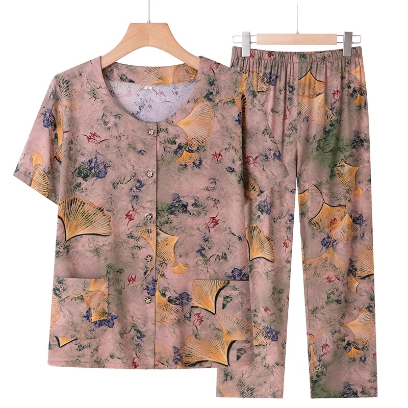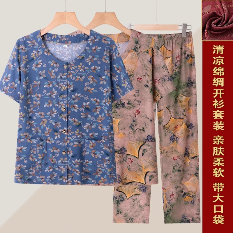 妈妈装 夏季 开衫 老人夏装 老太太服装 中老年女装 奶奶短袖 女棉绸套装