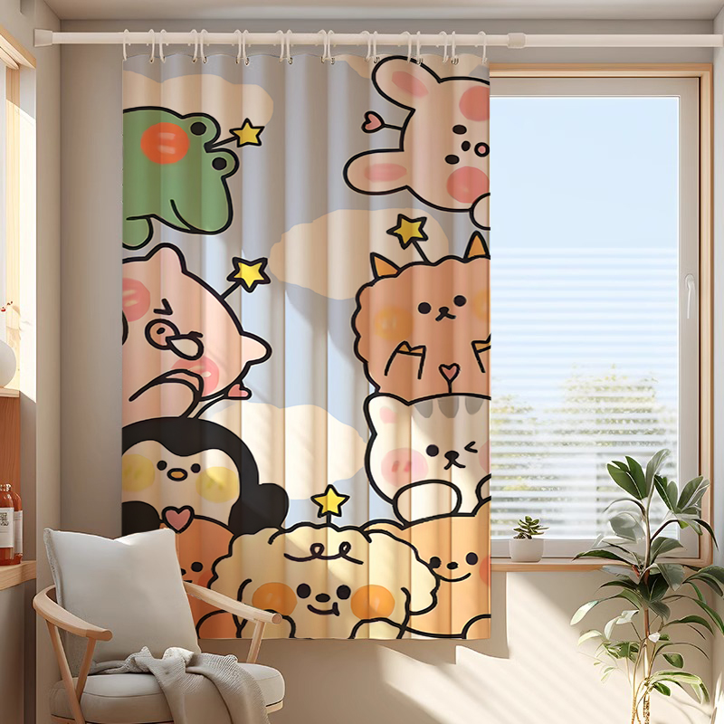 定制2024新款 儿童房小窗帘布出租房窗户卧室飘窗遮阳 免打孔安装