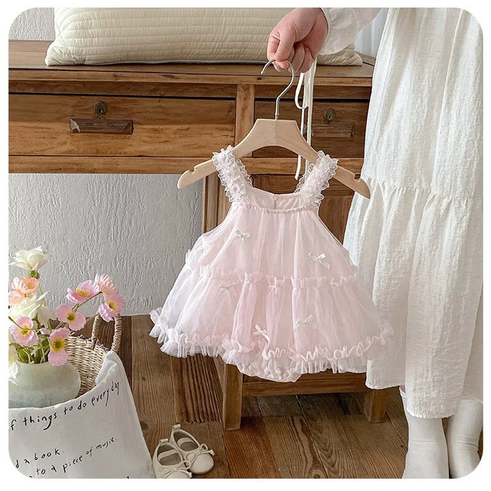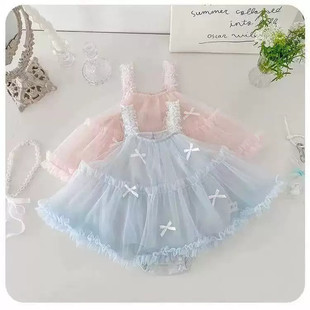 女宝宝包屁衣满月百天可爱网纱吊带连体衣夏装 婴儿衣服夏季 薄款