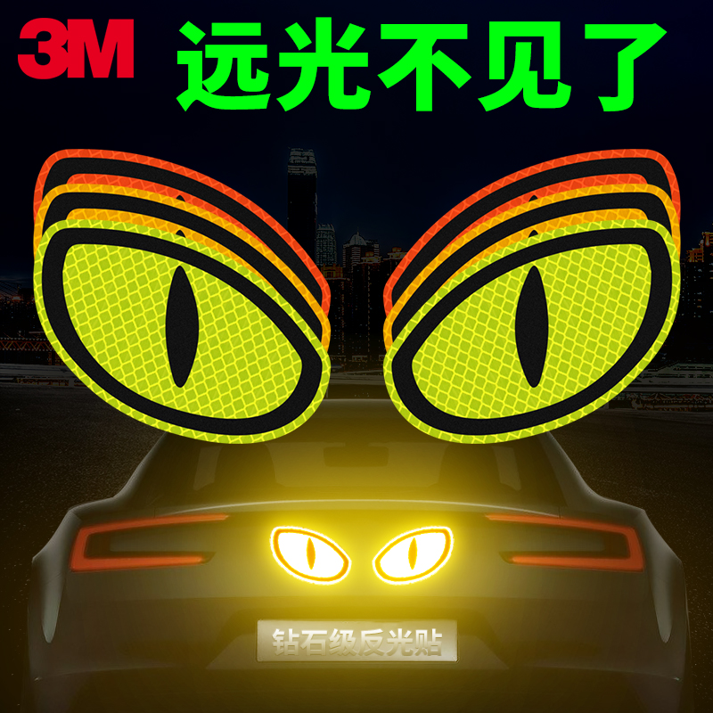 3M保持车距反光卡通贴条汽车关远光划痕遮挡车身改装 饰条安全警示