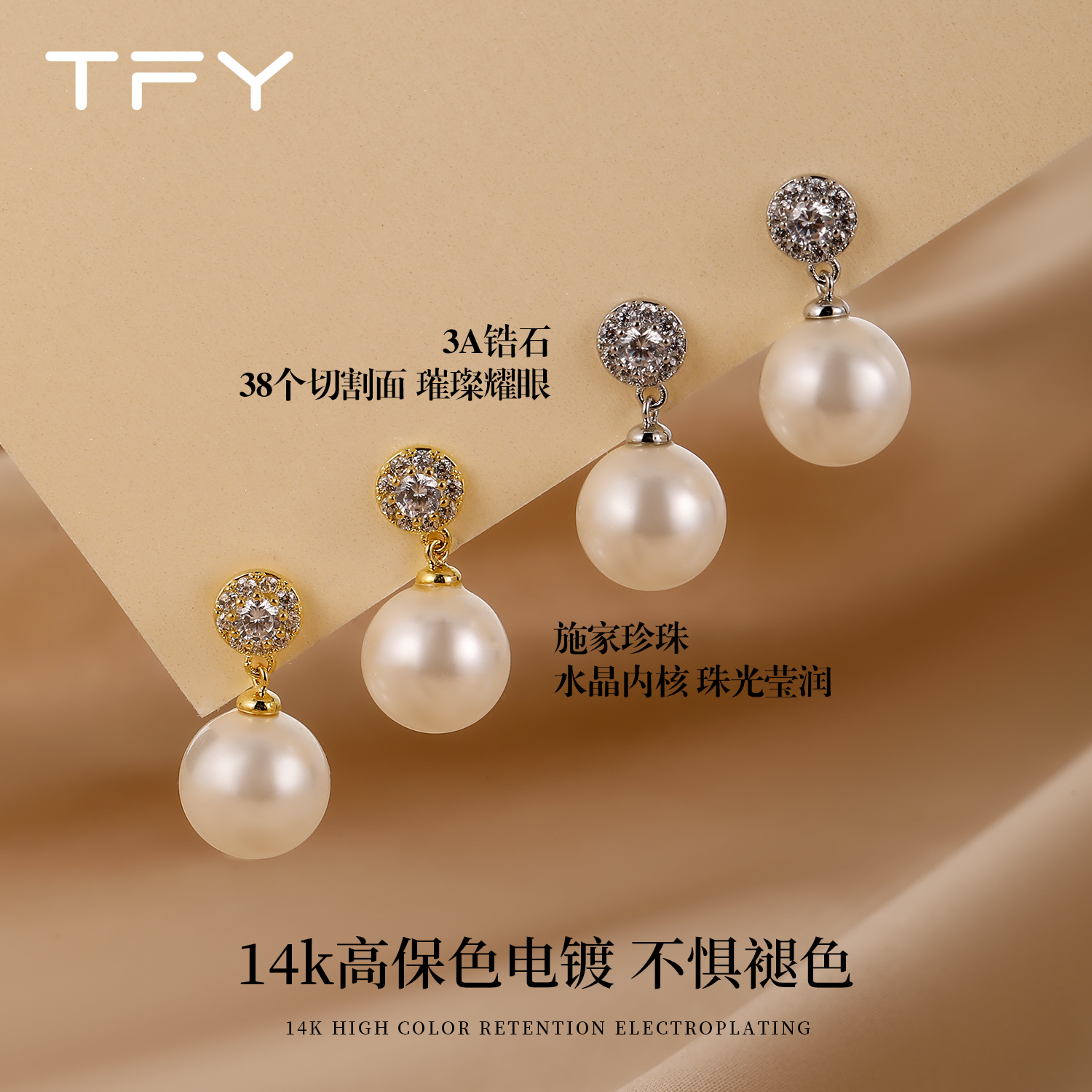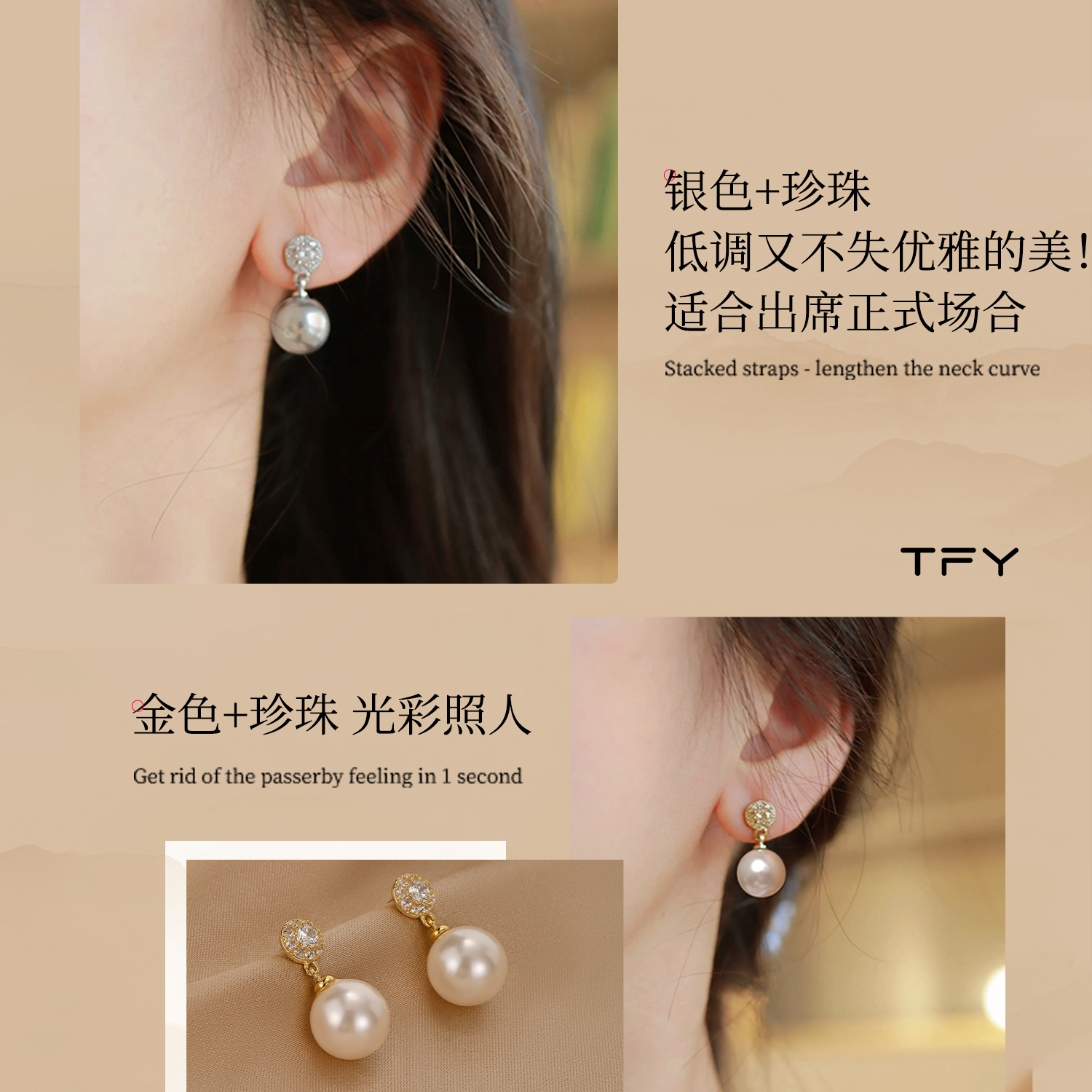高级感耳饰足银 爆款 小灯泡刘亦菲同款 人造珍珠耳环吊坠女2025新款