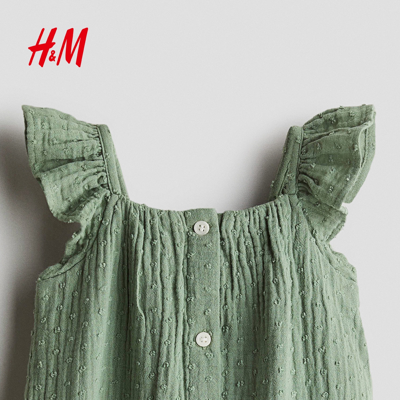女婴连身衣2025秋季 方领飞袖 薄款 无袖 爬服1206744 婴儿新款 HM童装