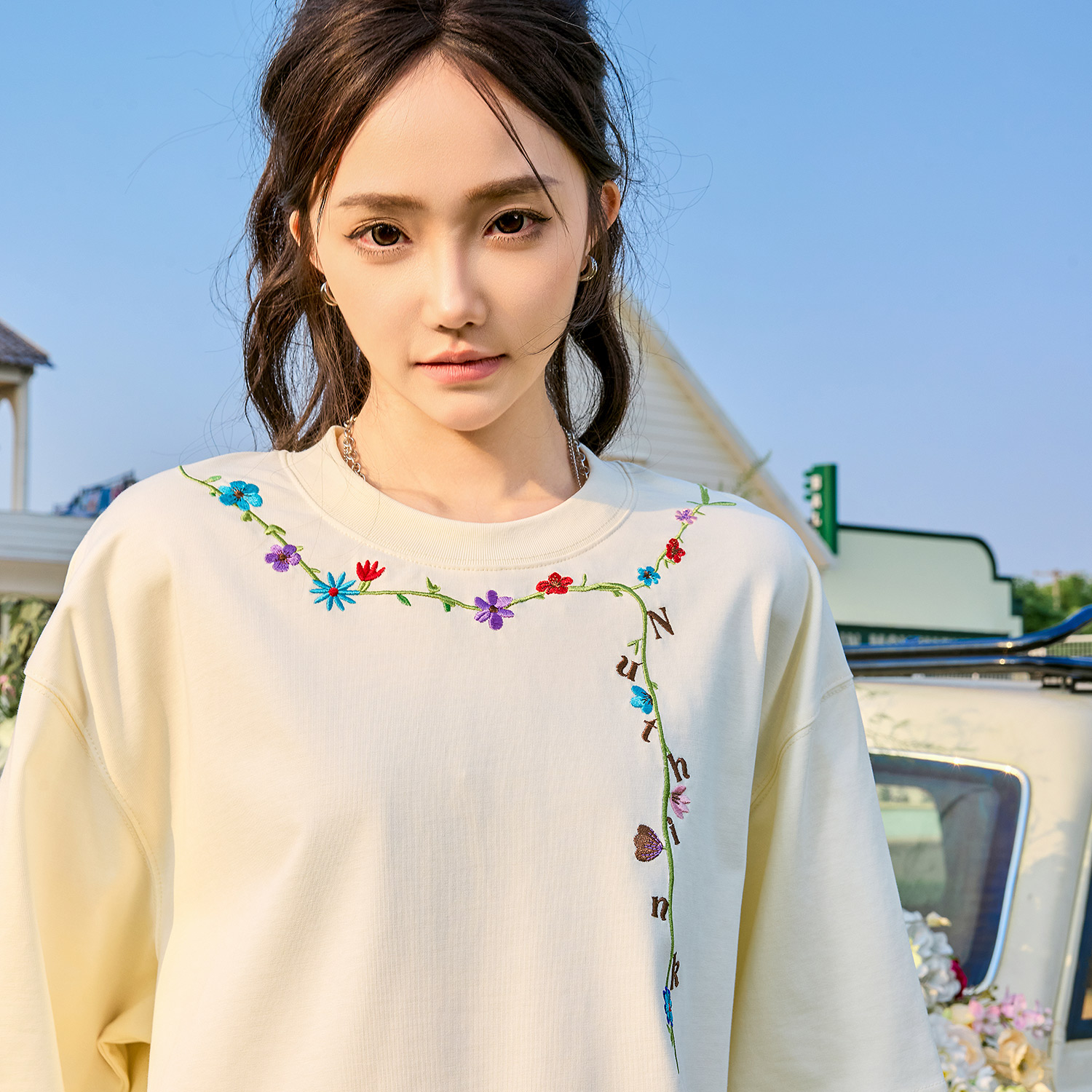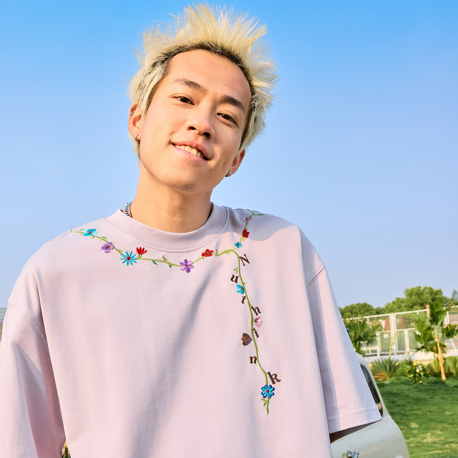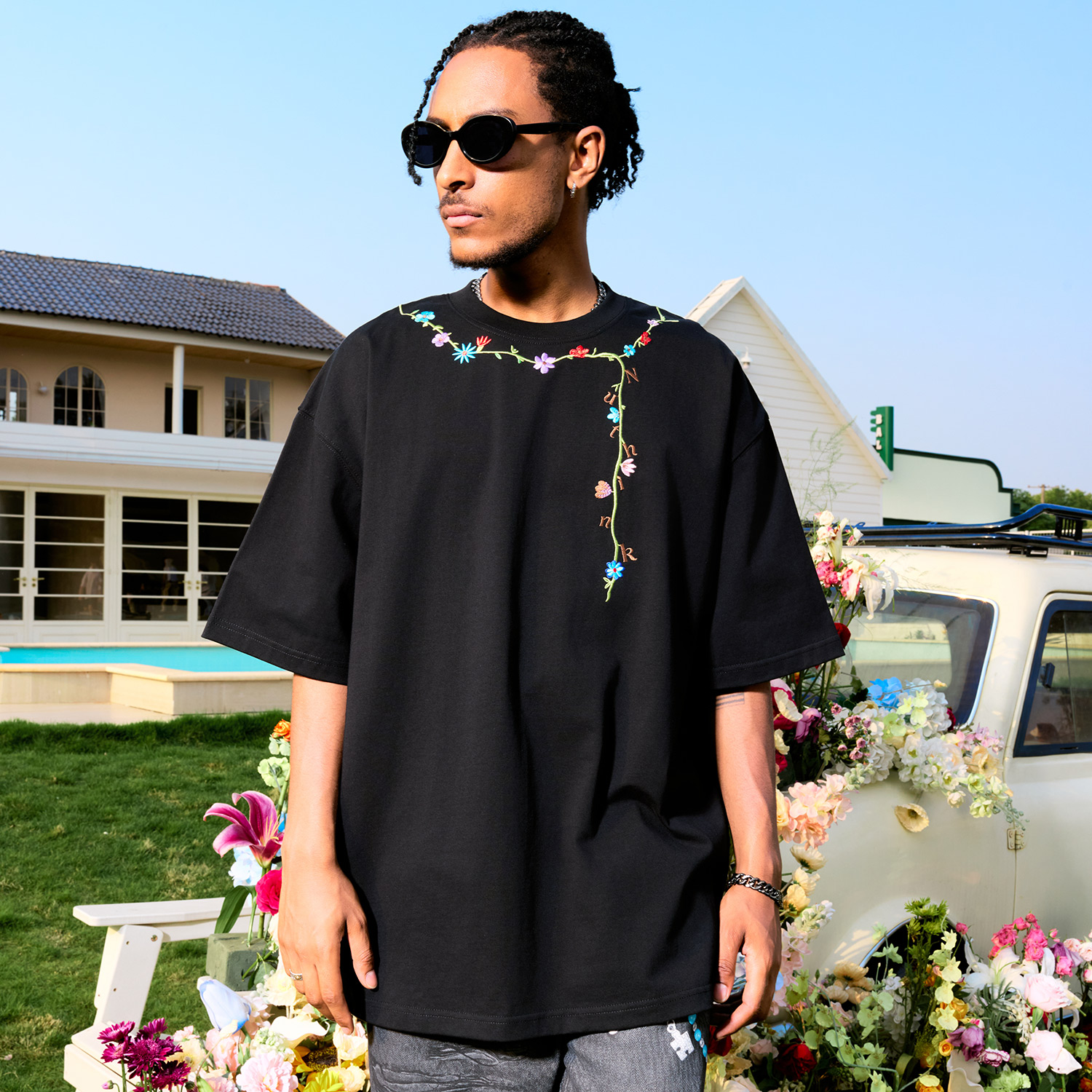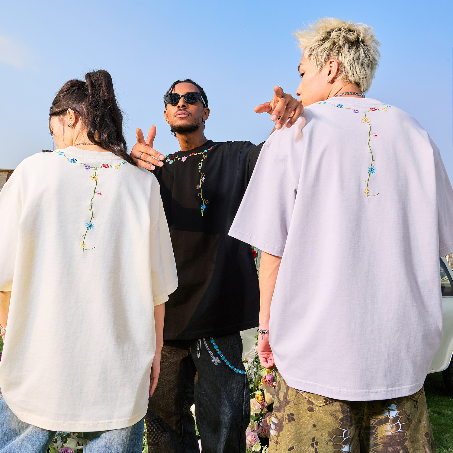 新款 复古潮牌重磅男女情侣2025夏季 T恤美式 Nuthink花卉刺绣短袖