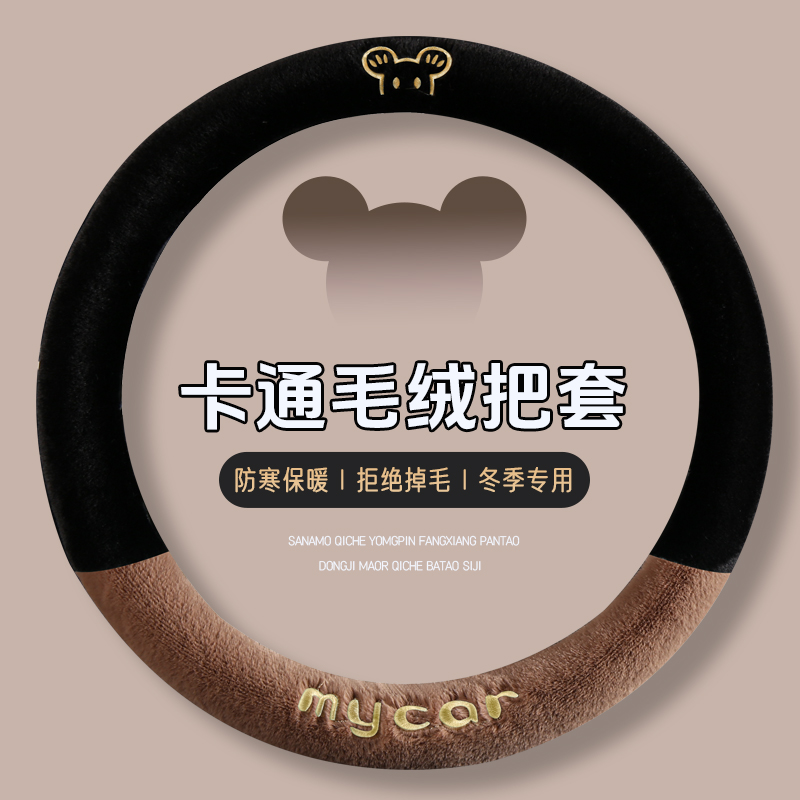 汽车方向盘套冬季 网红方向盘保护套冬天防滑保暖把套 毛绒男女新款